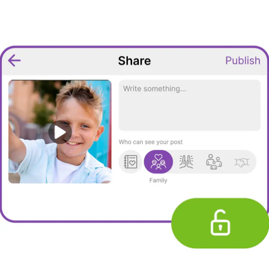 2. Uso compartido limitado: A través de myFirst Circle, los padres pueden controlar quién puede ver las creaciones de sus hijos, asegurando que el contenido se mantiene dentro de un círculo de confianza. Los niños pueden publicar fotos en un círculo social adaptado a ellos, categorizado por tipo de relación (familia, mejores amigos, amigos, conocidos), con los padres gestionando la visibilidad y editando las publicaciones, si es necesario.