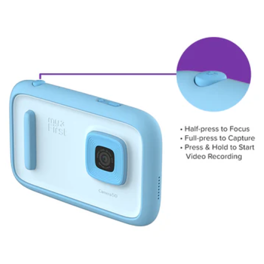 Comprender los matices de la fotografía es importante para los jóvenes creadores. MyFirst Camera 50 les introduce en las técnicas profesionales con su avanzado sistema de control del obturador de doble función que funciona con un mecanismo de media y completa pulsación, diseñado específicamente para mejorar la experiencia de disparo y la calidad de las fotos.