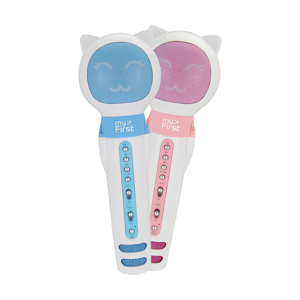 myFirst Voice tiene un altavoz inalámbrico para reproducir música mientras cantan. Es fácil, ¡conéctate con tu teléfono vía Bluetooth, tarjeta o por cable para reproducir la música que mejor acompañe al cantante!