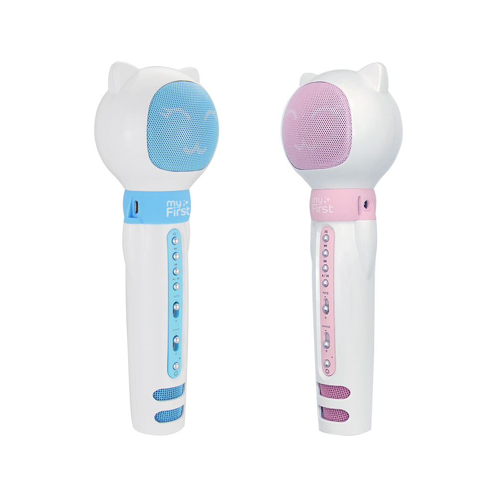 myFirst Voice tiene un micrófono que captura su voz y la reproduce a través del altavoz superior. Disfrutarán cantando con un micrófono de calidad como myFirst Voice. También tiene un potenciador de eco para crear la misma sensación de estar cantando en el escenario. ¡Se sentirán como una superestrella con myFirst Voice!
